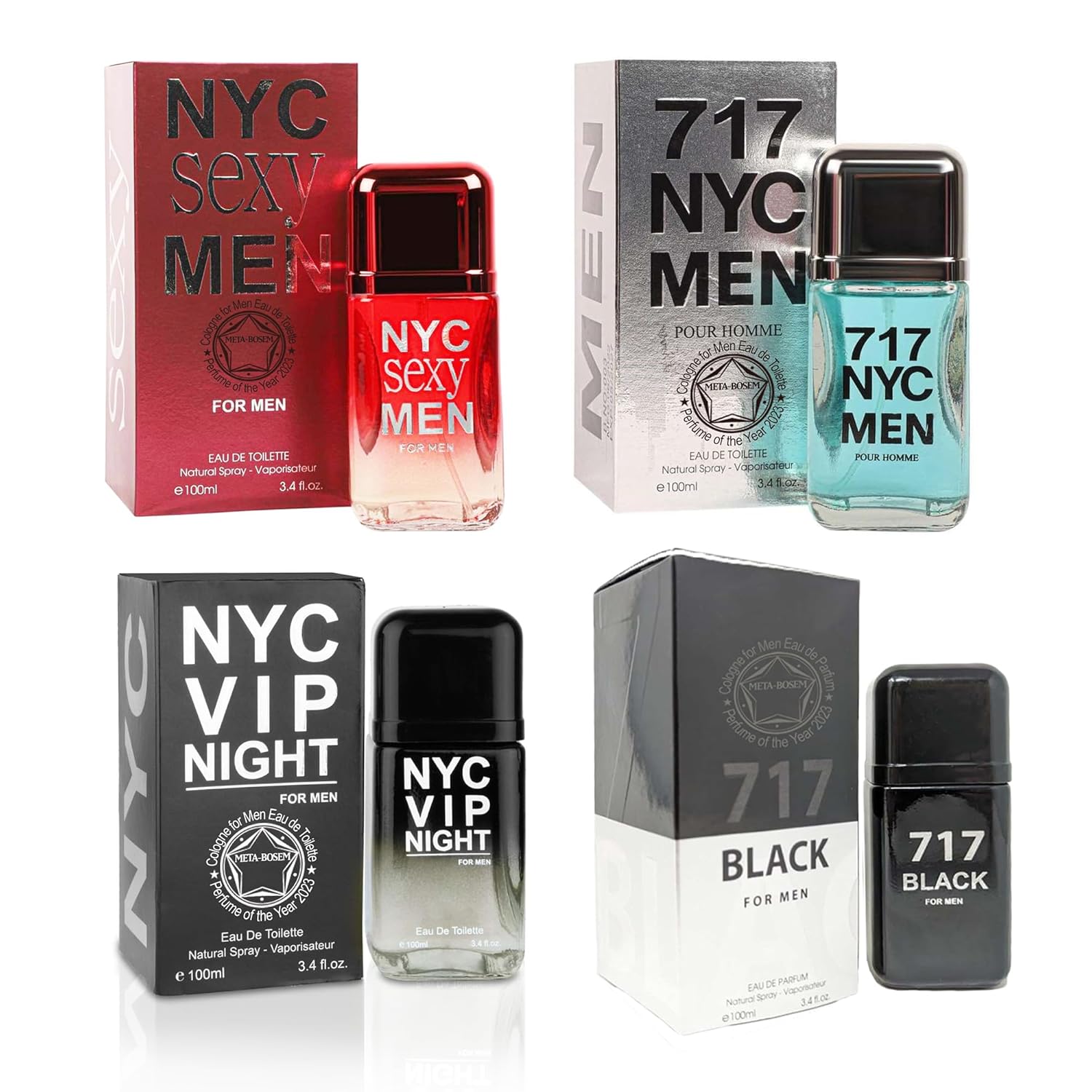 META-BOSEM 717 Men NYC+717 Men Aqua+717 VIP 4-Pc Set Men's Cologne Collection, Eau de Toilette&Parfum Natural Spray - Masculine Scent - Holiday Gift (Pack of 4) Each 3.4 Fl Oz, Total 13.60 Fl Oz